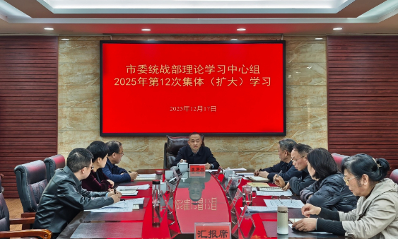 12月17日,市委统战部理论学习中心组举行2025年第12次集体(扩大)学习。市委常委、市委统战部部长李罗丝主持并作小结讲话。