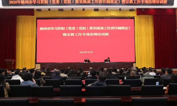 12月19日,2025年郴州市学习贯彻《(党委(党组))落实统战工作责任制规定》暨宗教事务治理专项行动工作培训班举行。市委常委、市委统战部部长李罗丝出席并讲话。