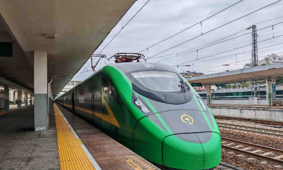 2月21日上午10时29分,郴州至广州白云C4105次城际动车从郴州火车站缓缓驶出。