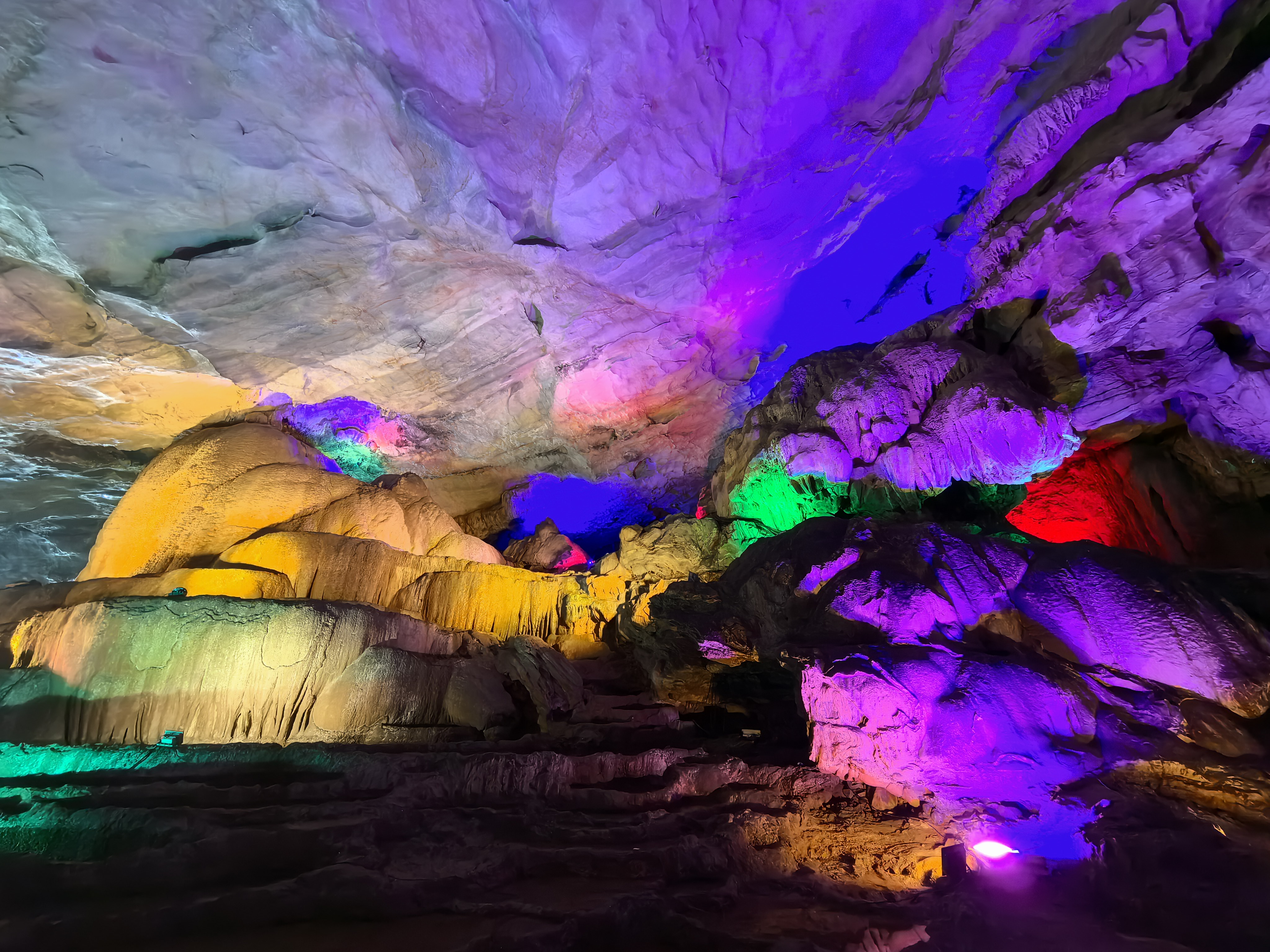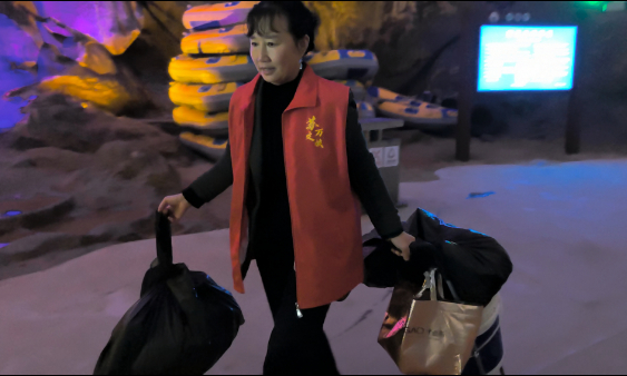 2月22日10时许,北湖区安和街道坦山村内的万华岩景区溶洞内,一个披着红色马甲的身影逆着人流穿行,不时提醒游客地面湿滑、注意脚下安全。